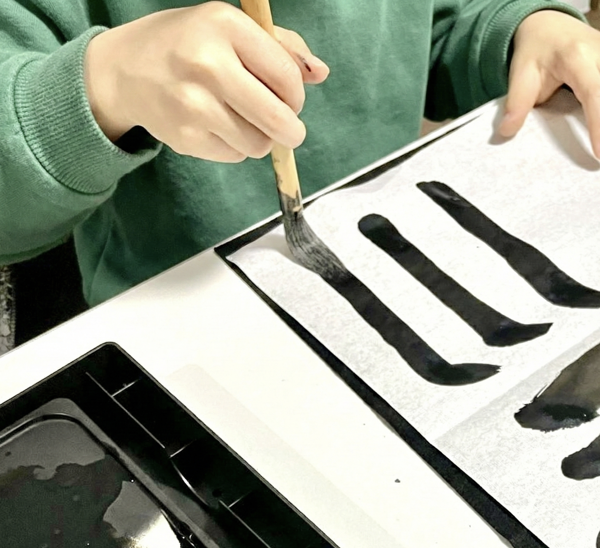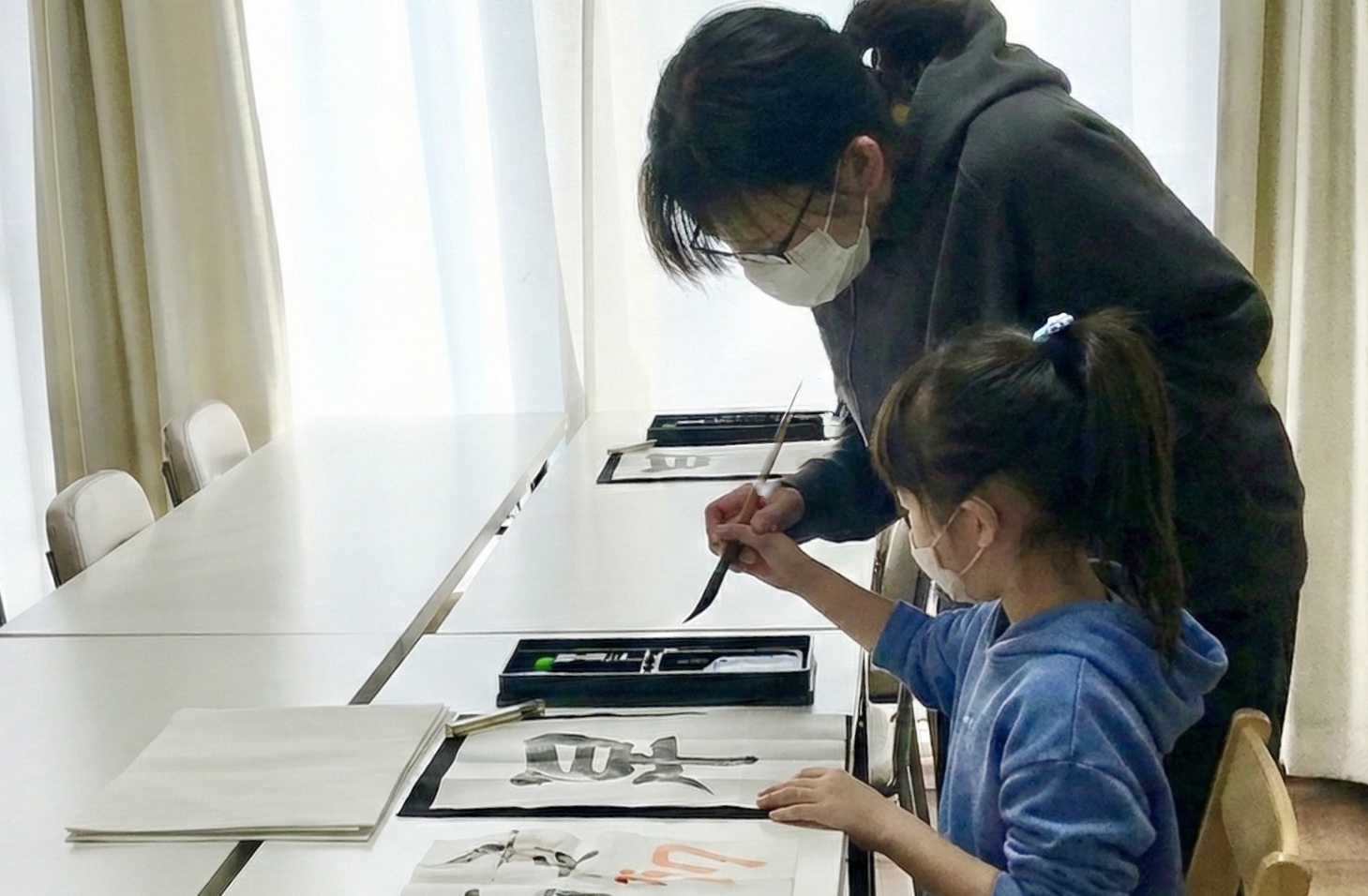 筆の持ち方から丁寧にお伝えします。基本的な点画の練習を通じて、教室の雰囲気を体験いただければと思います。